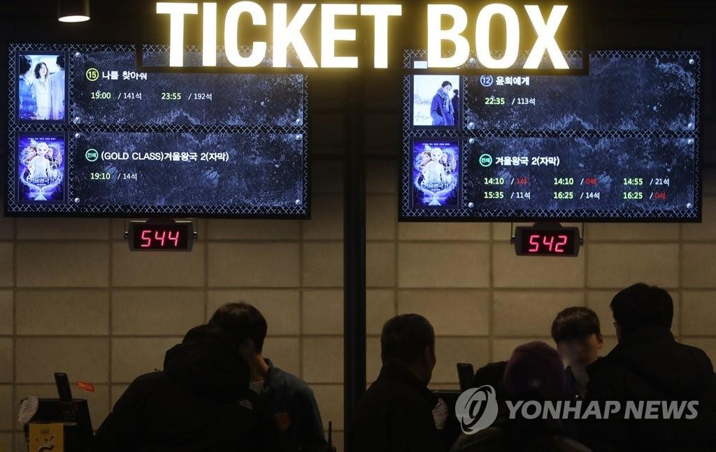 SEOUL, Dec. 29 (Yonhap) -- The aggregate number of moviegoers in South Korea set a new annual record in 2019, surpassing 220 million, industry data showed Sunday. Cinemas across the nation drew around 225 million people between Jan. 1 and Dec. 28, according to the ticket sales tally system of the Korean Film Council. The previous record was set in 2017 with 220 million moviegoers. The number of moviegoers in South Korea first broke the 200 million mark in 2013. This year, five films screened here attracted more than 10 million: "Extreme Job," "Avengers: Endgame," "Frozen 2," "Aladdin" and "Parasite." The market share of local films stood at 50.4 percent, while that of Japanese ones came to 1 percent with an audience of 2.17 million, down 880,000 from 2018, amid deepened stand-offs between Seoul and Tokyo over trade and historical issues. lcd@yna.co.kr (END)