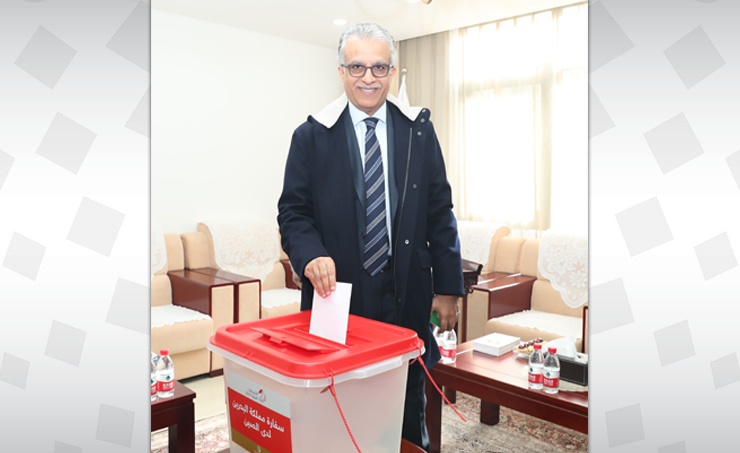 Beijing, Nov. 20 (BNA): Supreme Council for Youth and Sports Secretary General Shaikh Salman Bin Ibrahim Al Khalifa cast his ballot in the 2018 parliamentary elections at the Bahraini embassy in the Chinese capital Beijing where he is on an official visit.