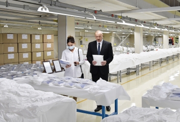 President Ilham Aliyev and first lady Mehriban Aliyeva attended opening of face mask factory and protective coverall plant in Sumgayit
