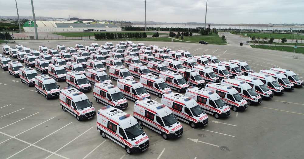 President Ilham Aliyev and first lady Mehriban Aliyeva viewed new ambulances delivered to Azerbaijan