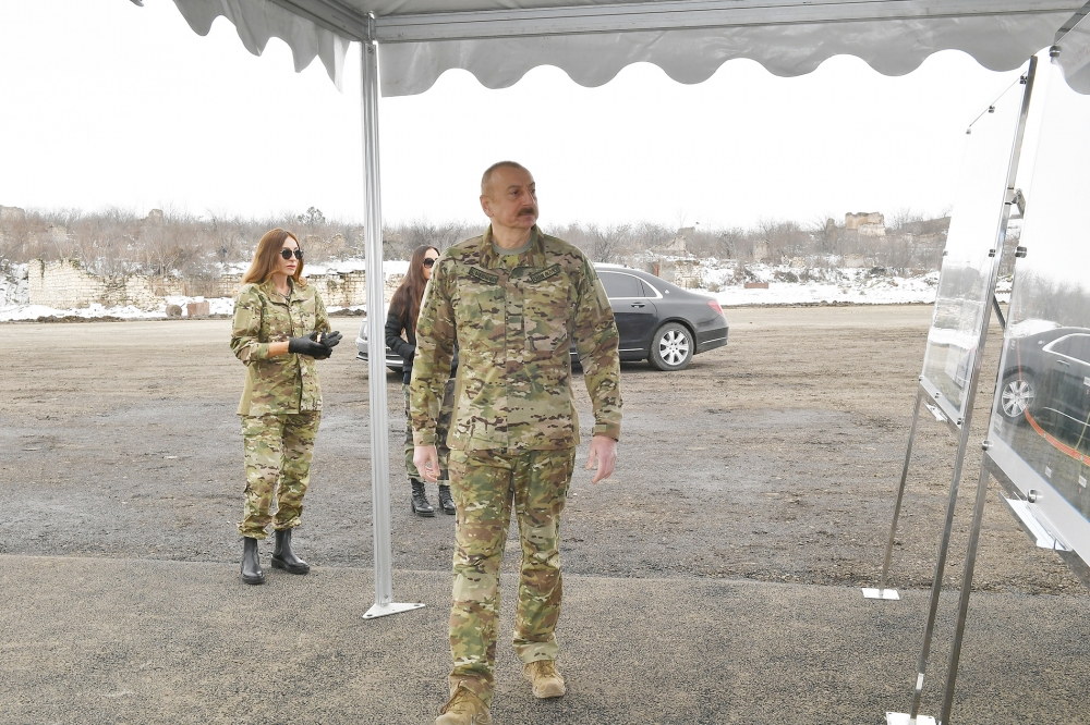 We have written a new history of our people, a glorious history of heroism, and great construction work is under way in the liberated lands today. Major infrastructure projects are being implemented. Today, coming from Baku and driving through the destroyed city of Fuzuli, I saw again the disaster unleashed by Armenian savages. Let the foreign circles defending them and standing behind them today open their eyes and see what day the Armenian savagery has turned our cities into. All our cities have been destroyed, all our villages have been destroyed, historical sites have been destroyed, mosques have been destroyed, graves have been destroyed, unmatched vandalism and barbarism have been perpetrated. We, for our part, have liberated our lands. Armenians from Armenia and foreign countries were illegally brought and settled in this settlement. But this settlement is safe, not a single building has been destroyed, not a single building has been burned. This is the approach of the Azerbaijani Army, this is our moral code. What did the Armenians do? They destroyed all our buildings, our mosques. They kept animals in our mosques. They have desecrated our sacred monuments. The houses built by the Azerbaijanis – the Armenians lived there illegally – were burned and destroyed. They cut down forests from 10 November to 1 December. They destroyed hydroelectric power plants. This is the difference. Azerbaijani soldiers have high moral qualities, and the instructions given to soldiers and all servicemen have been fulfilled. I said that we have never fought against civilians, and everyone can see that now. I said that the Armenian leadership should give us a timetable of when it would leave our lands and that we were ready to stop the war, and we did it. Today we have returned here as owners of these lands. The Azerbaijani flag is flying in all the liberated lands today. Today, as the Commander-in-Chief of our Victorious Army, I raised our national flag in Hadrut settlement. This flag will fly here forever. We Azerbaijanis will live in our ancestral lands forever. We will rebuild all the destroyed cities and villages, life will return here, people will return here, and we will once again show the world the greatness of our people. Khojavand is ours, Karabakh is Azerbaijan!