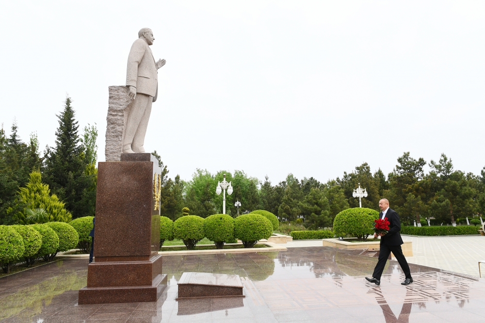 Hajigabul, April 20, AZERTAC President of the Republic of Azerbaijan Ilham Aliyev has arrived in Hajigabul district for a visit. The head of state laid flowers at a statue of national leader Heydar Aliyev in the center of the city of Hajigabul. Head of Hajigabul District Executive Authority Rustam Khalilov informed President Ilham Aliyev of the works carried out in the district.
