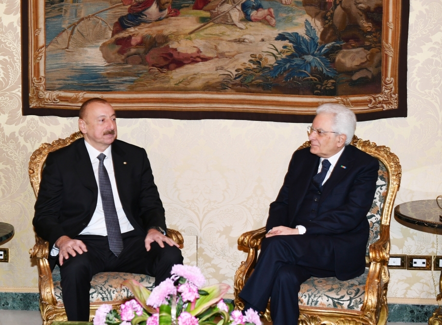 President Ilham Aliyev congratulates his counterpart Sergio Mattarella as Italy crowned European football champions