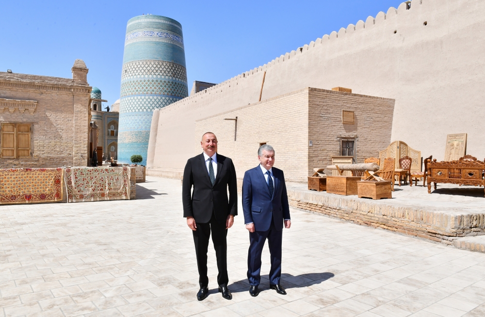 Khiva, June 22, AZERTAC President of the Republic of Azerbaijan Ilham Aliyev, who is on state visit to Uzbekistan, and President of the Republic of Uzbekistan Shavkat Mirziyoyev have familiarized themselves with Ichan-Kala Historical Architectural State Museum in the city of Khiva. The head of state was informed of the Ichan-Kala. The Ichan-Kala Historical Architectural State Museum was founded in 1920. Since 1969 the Ichan-Kala city is a museum and reserve. The total area of the museum is 26 hectares and was built according to the ancient traditions of Central Asian town building. 14 independent exhibits in the 69 halls of the museum-reserve reveal the period of Khorezm and Khiva's history, practical art, craft, culture and literary life.