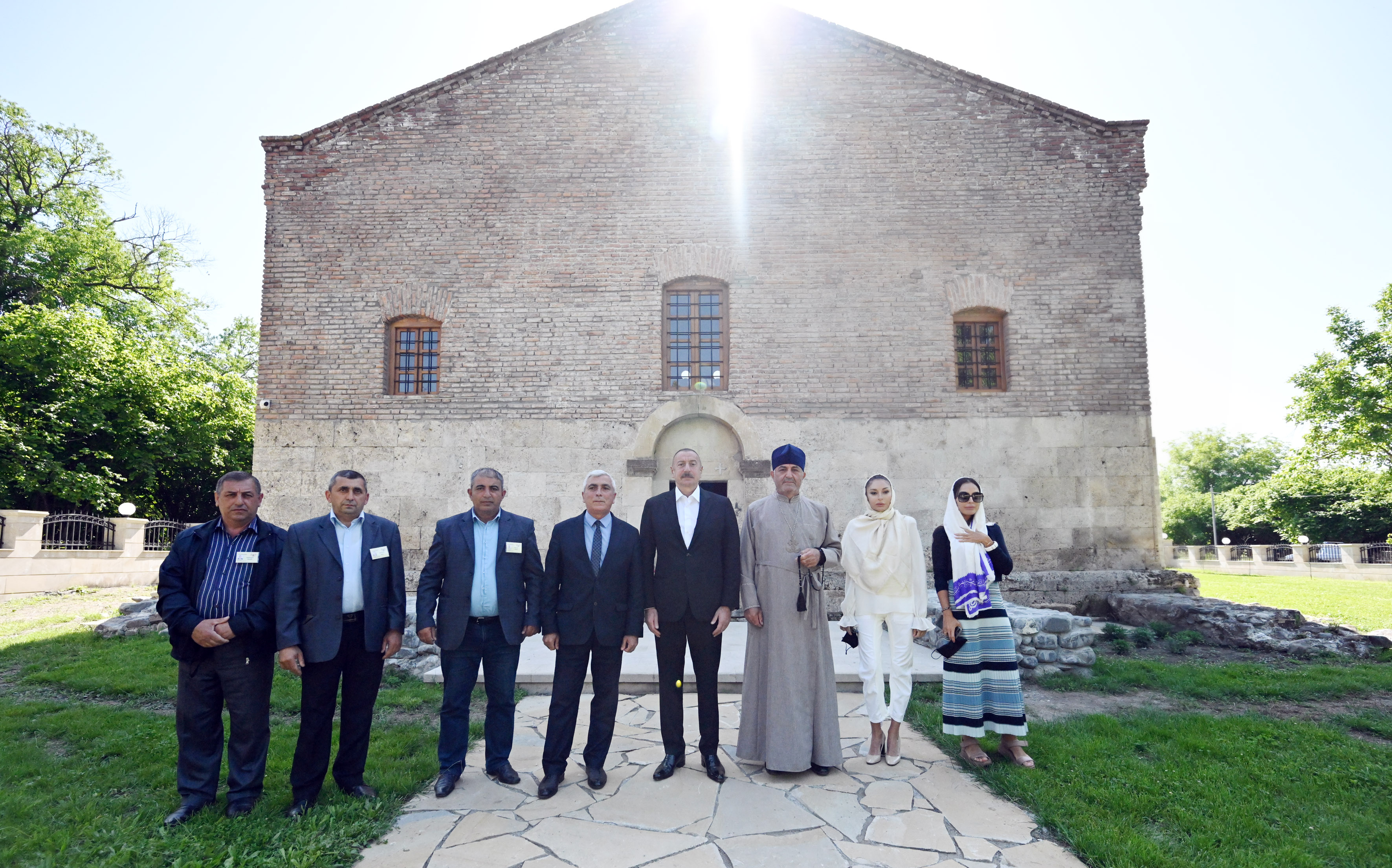 President of the Republic of Azerbaijan Ilham Aliyev, First Lady Mehriban Aliyeva and their daughter Leyla Aliyeva have visited the Albanian Church of the Blessed Virgin Mary located in Nij settlement of Gabala district.