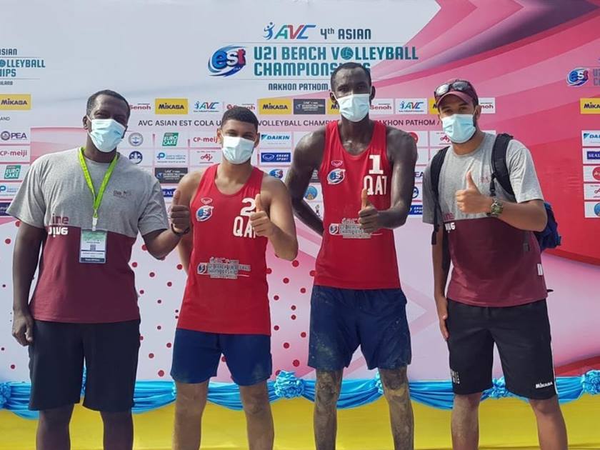 The Qatari team, consisting of Abdullah Naseem and Abdullah Hassanein, came in 5th place in the final ranking of the Asian Beach Volleyball Championship currently being held in Nakhon Pathon, Thailand.