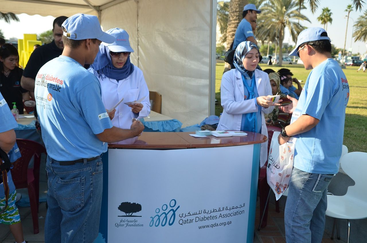 The Medical Team of Qatar Diabetes Association conducted a blood sugar test, pressure measurement, height, weight, and waist circumference measurements, provided the necessary health education and consultations on how to prevent diabetes, healthy eating, and the importance of physical activity, and distributed educational bulletins on prevention and diabetes care.