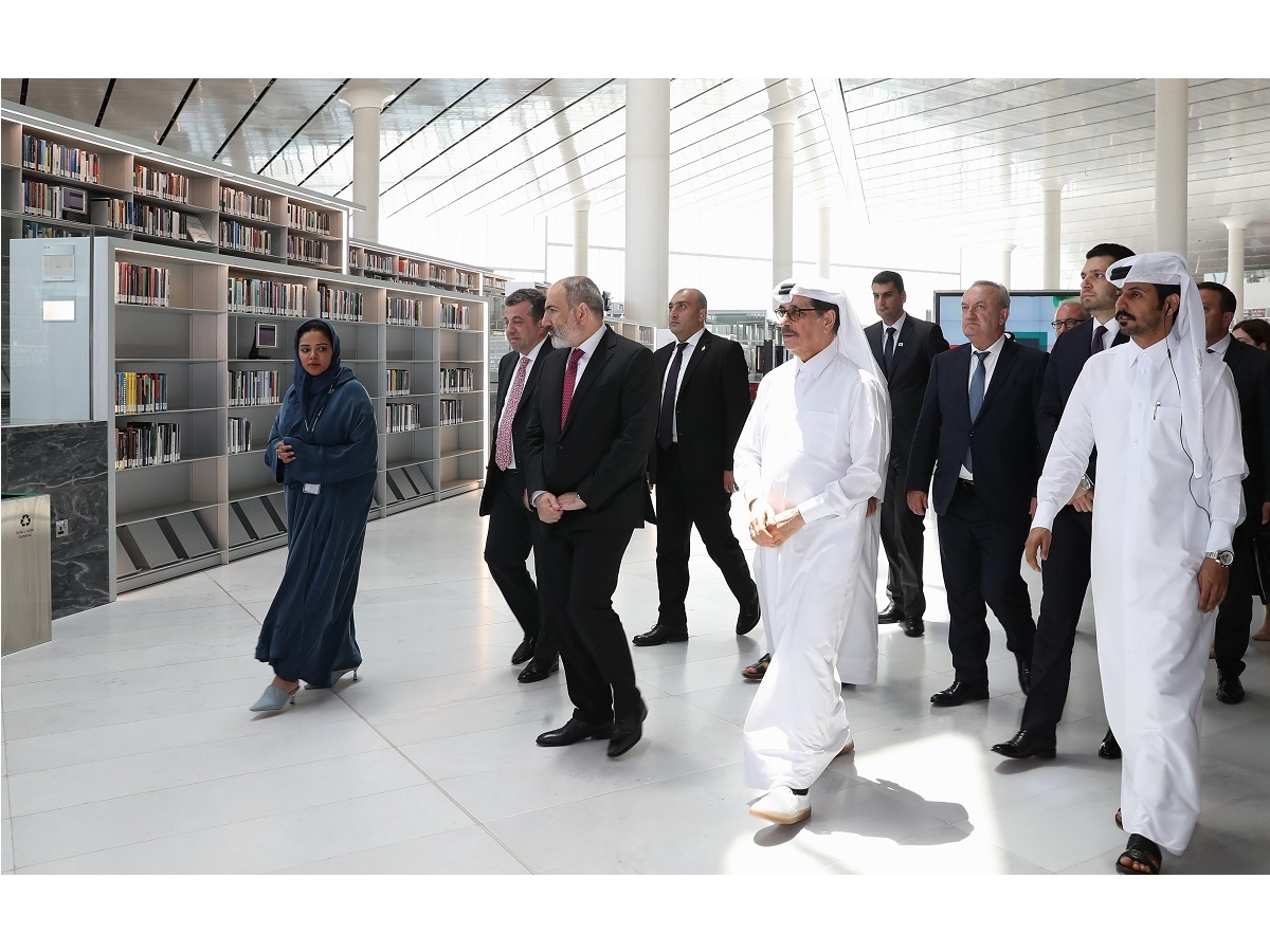 Doha, June 14 (QNA) - HE Minister of State and President of Qatar National Library Dr. Hamad bin Abdulaziz Al Kawari welcomed HE Prime Minister of Armenia Nikol Pashinyan and the accompanying delegation to discuss future collaborations and cultural exchanges.