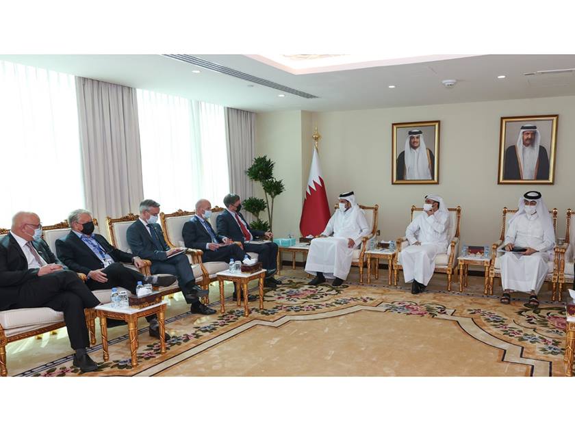 Doha, March 28 (QNA) - HE Minister of Commerce and Industry Sheikh Mohammed bin Hamad bin Qassim Al-Thani met with a delegation of members of the Global Advisory Council of the Wilson Center in the United States of America, on the occasion of their visit to the country.