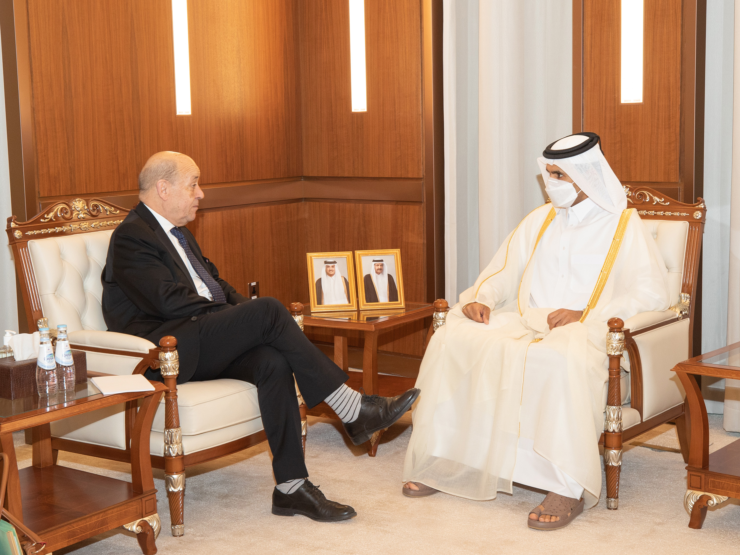 Doha, March 28 (QNA) - HE Minister of State for Energy Affairs Eng. Saad bin Sherida Al Kaabi met Monday with HE Minister of Europe and Foreign Affairs of the French Republic Jean-Yves Le Drian, who is currently visiting the country.