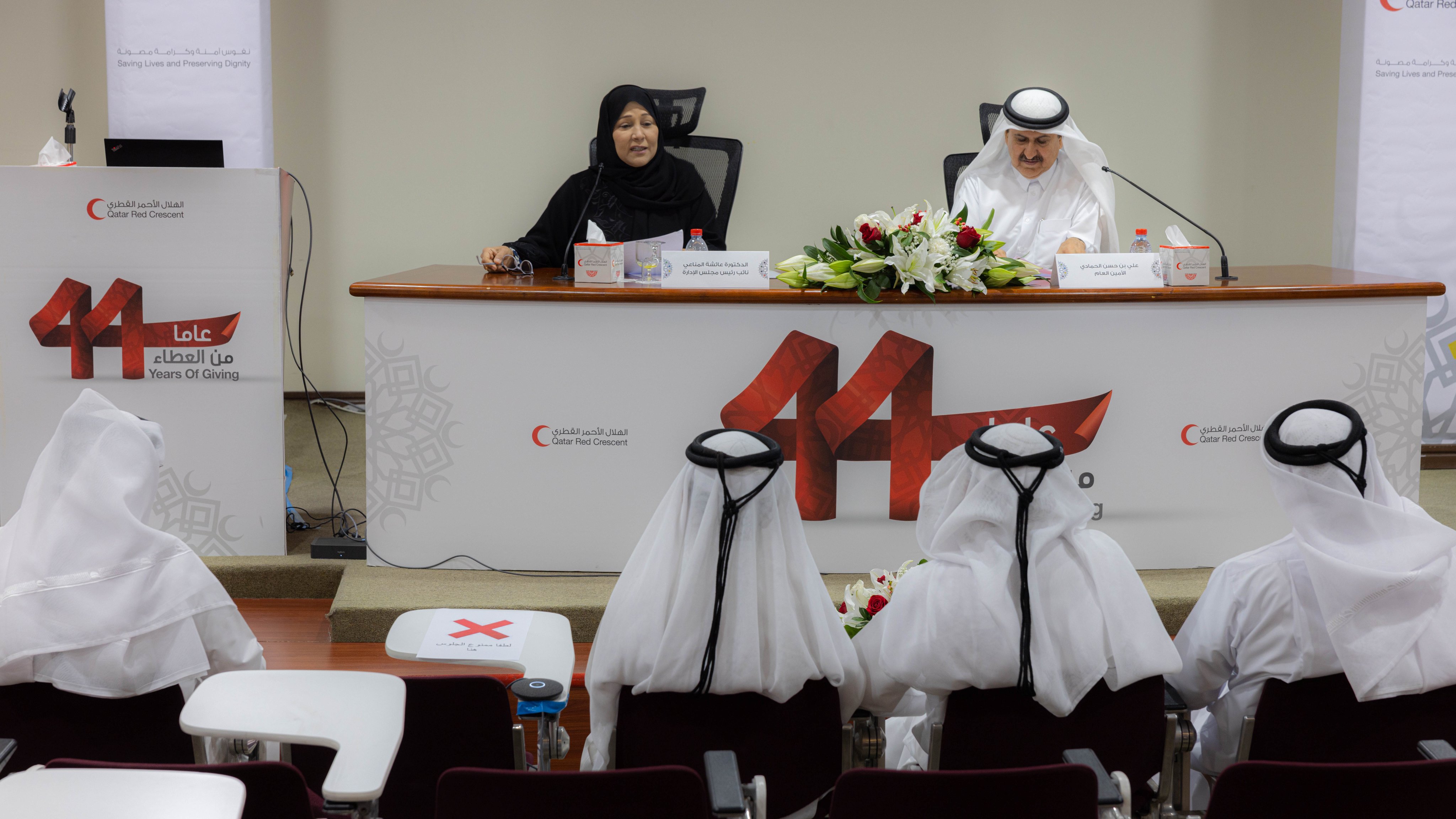In her speech during the meeting, HE Deputy Chairman of the Board of Directors of Qatar Red Crescent, Dr. Aisha Yousef Al Mannai indicated that humanitarian work requires concerted efforts and determination, so that the Qatar Red Crescent continues to provide its vital services to the beneficiaries, by working to mobilize support from the people of Qatar, to carry out humanitarian projects and campaigns that contribute to alleviating the suffering of the needy people.