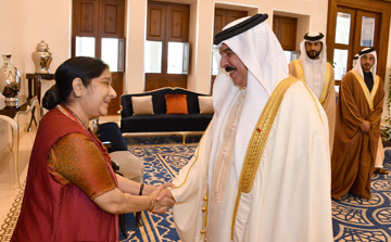 Manama, July 15 (BNA): His Majesty King Hamad bin Isa Al Khalifa today received India’ Minister of External Affairs, Sushma Swaraj, marking holding the second meeting of the Bahrain-India Joint Commission in Bahrain.