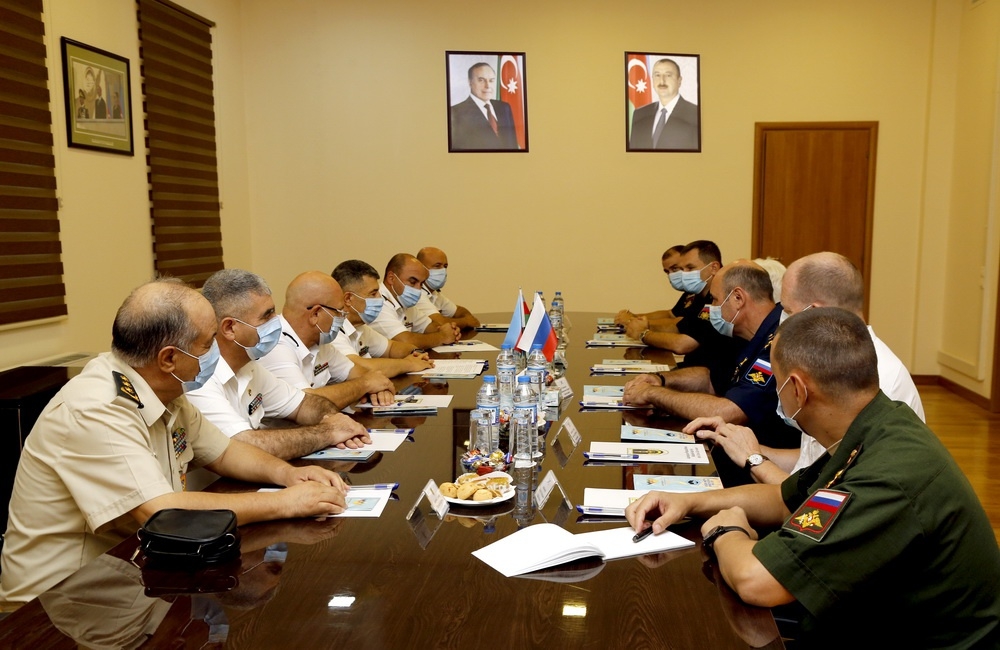 Commander of the Naval Forces of Azerbaijan, Rear Admiral Subhan Bakirov met with the delegation led by the representative of the Caspian Flotilla of the Russian Navy Captain 1st Rank Sergei Yekimov.