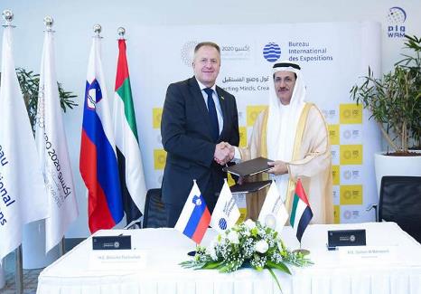 The Republic of Slovenia today signed the letter of intent, confirming its participation in the Expo 2020 Dubai, at a meeting between Sultan bin Saeed Al Mansouri, Minister of Economy, and Zdravko Pocivalsek, Slovenian Minister of Economic Development and Technology.
