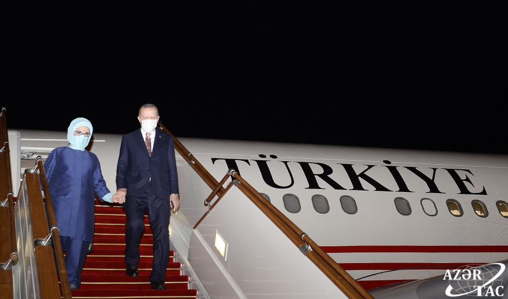 Turkish President Recep Tayyip Erdogan arrives in Azerbaijan for official visit