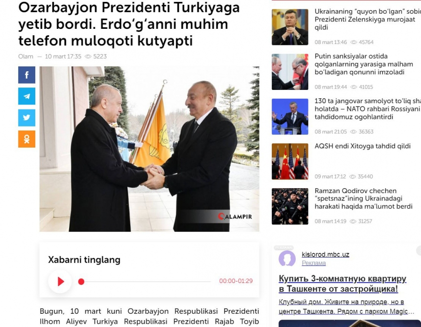 Uzbek news portals “qalampir.uz” and “xabar.uz” have published articles about Azerbaijani President Ilham Aliyev`s visit to Turkey.