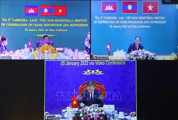 Vietnamese Minister of Public Security General To Lam, Cambodian Deputy Prime Minister and Minister of the Interior Samdech Krolahom Sar Kheng and Lao Minister of Public Security General Vilay Lakhamphong met virtually on January 5.
