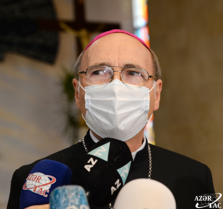 “We must preserve our unity and solidarity for future generations. The Catholic Church expresses gratitude to the authorities of Azerbaijan, personally to President Ilham Aliyev and first lady Mehriban Aliyeva, as well as to the leaders of all religious communities for their exceptional role in preserving and strengthening the unity of the people,” the Ordinary said.