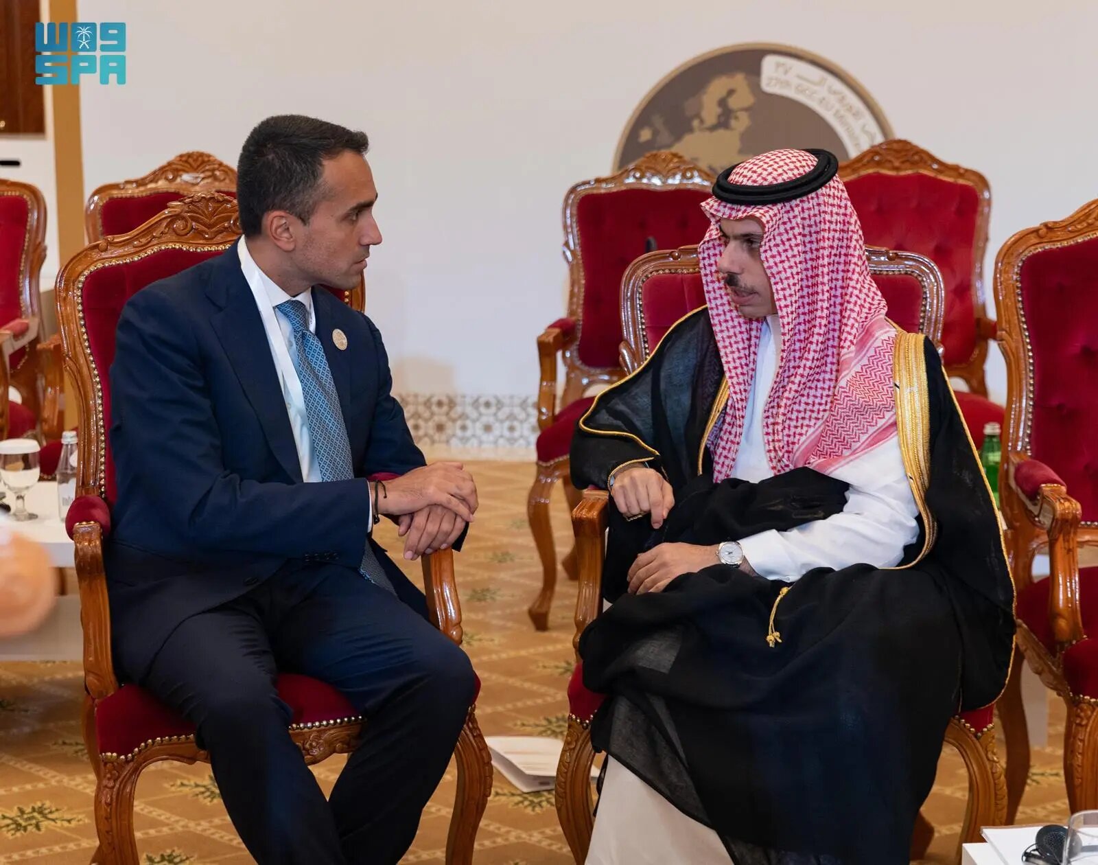 Muscat, October 10, 2023, SPA -- Minister of Foreign Affairs Prince Faisal bin Farhan bin Abdullah met today with EU Special Representative for the Gulf region Luigi Di Maio, on the sidelines of the meeting of the 27th ministerial meeting between the Gulf Cooperation Council (GCC) and the European Union (EU), in Muscat, Oman.