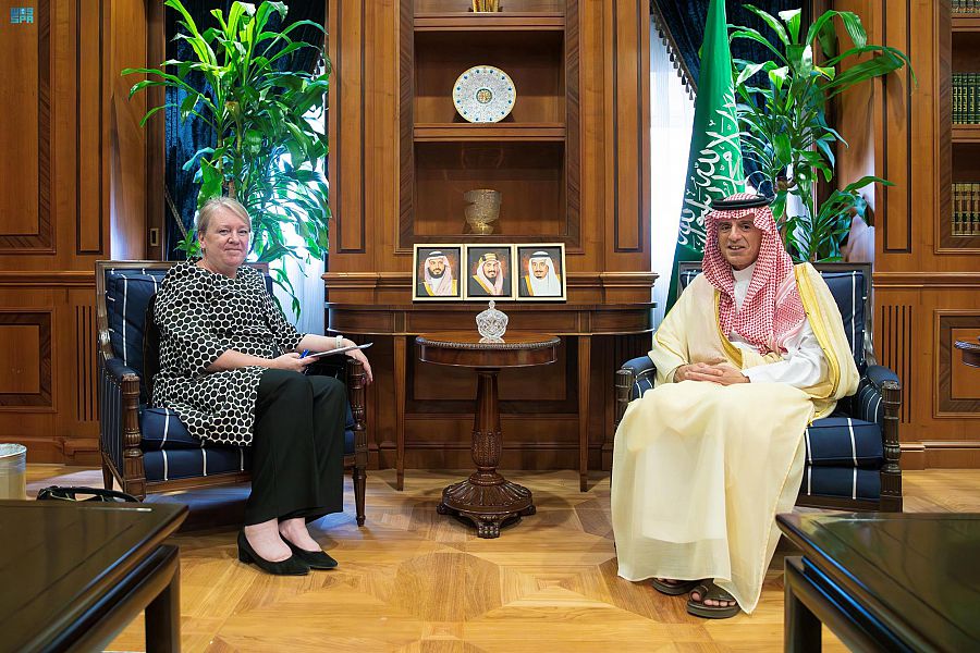 Riyadh, June 12, 2023, SPA -- Today, the Minister of State for Foreign Affairs, Cabinet Member, and Envoy for Climate, Adel bin Ahmed Al-Jubeir, welcomed the Ambassador of the Kingdom of the Netherlands to the Kingdom of Saudi Arabia, Janet Alberda, at the Ministry's headquarters.