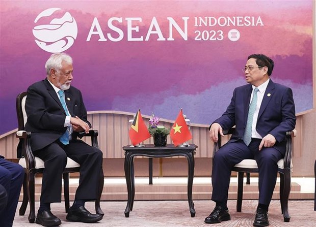 During the meeting, held on the occasion of the two PMs' attendance in the 43rd ASEAN Summit and related summits in Jakarta, Indonesia, PM Chinh congratulated Gusmao on his election as Prime Minister of Timor Leste for the 2023-2028 tenure, and expressed his confidence that under the leadership of Gusmao, Timor Leste will continue to reap great achievements in construction and development, gradually asserting its role and position in the region and the world.