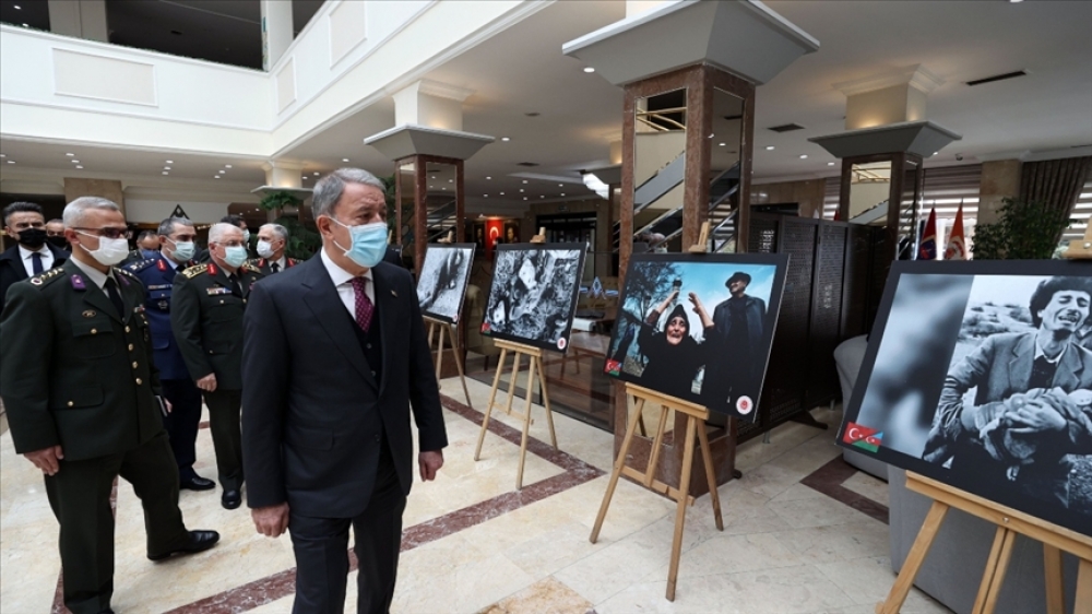 Baku, March 11, AZERTAC A photo exhibition dedicated to the 29th anniversary of the Khojaly genocide was launched at the Central Army House of the Turkish Armed Forces in Ankara. Turkish Minister of National Defense Hulusi Akar, Chief of General Staff of the Armed Forces General Yasar Guler, Commander of the Land Forces Army General Umit Dundar, Commander of the Navy Adnan Ozbal and Commander of the Air Force Army General Hasan Kucukakyuz attended the opening ceremony. Speaking at the event, Hulusi Akar said: “We honor the memory of our Azerbaijani brothers who were brutally killed in Khojaly 29 years ago. We always share, from the bottom of our hearts, the grief of our Azerbaijani Turkic brothers. We didn’t not forget the massacre, we will not forget! We will never forget the past, but we will look to the future. May God have mercy on all our compatriots martyred in Khojaly.”