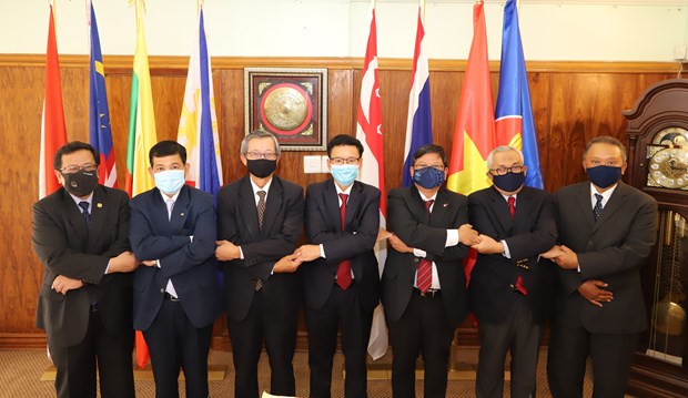 They examined the pandemic situation in the host country and shared pandemic prevention measures undertaken by their respective diplomatic missions./.