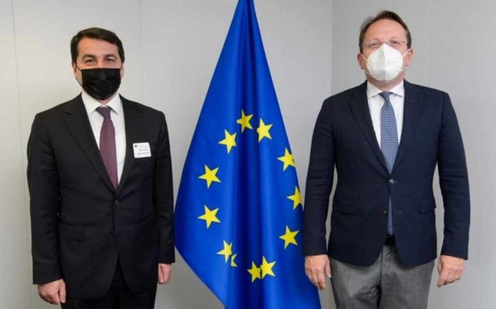 Assistant to the Azerbaijani President-Head of Foreign Policy Affairs Department of the Presidential Administration Hikmat Hajiyev has met with EU Commissioner for Neighborhood and Enlargement Negotiations Oliver Varhelyi in Brussels, according to EU Commissioner’s official Twitter account.