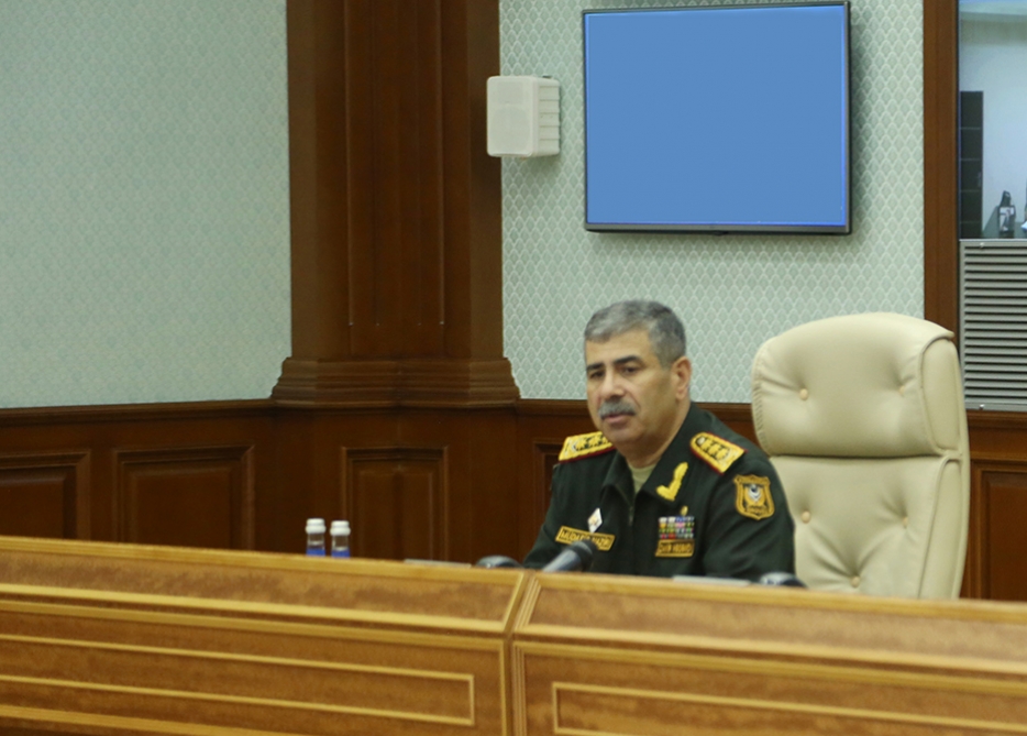 The Minister of Defense delivered to the meeting participants the tasks assigned to the Azerbaijan Army by the President of Azerbaijan, Commander-in-Chief of the Armed Forces Ilham Aliyev.