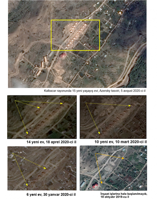 The residential complex, which began to be built in late 2019, now consists of 15 houses. The speed and the continuation of construction work make clear that this settlement will be further expanded. Thus, if in January 2020, 6 houses were completed, in March - 10 houses, in April - 14 houses, and in August this figure reached 15. As part of such an artificial settlement policy of Armenia, in recent years the illegal actions were taken in connection with the construction of new settlements in the occupied territories of Azerbaijan, including the residential complex "Aracamux" in Jabrayil and "Ariavan" in Lachin region, as well as in Zangilan and Khanlig village of Gubadli region.