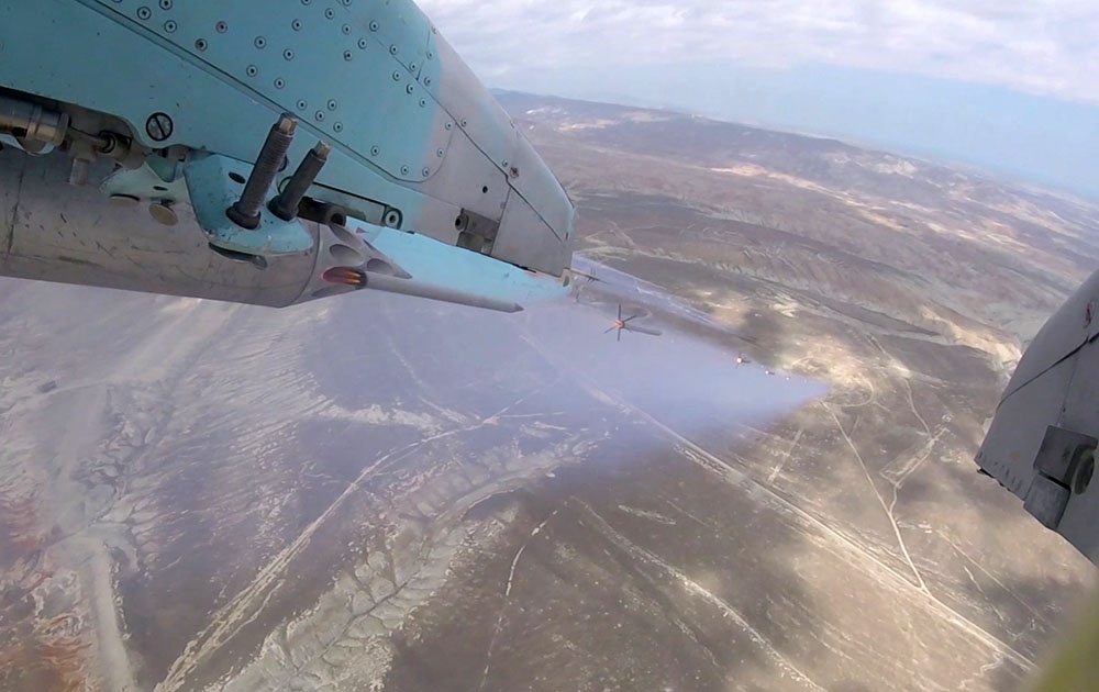 Azerbaijan Air Force aircraft conducts live-fire flight-tactical exercises