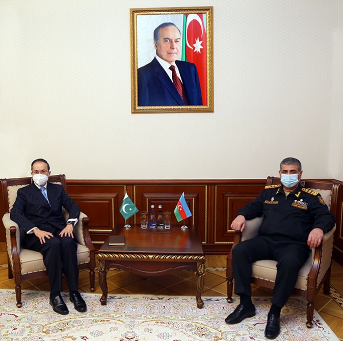 Azerbaıjan`s Minister of Defense, Colonel General Zakir Hasanov has met with the newly appointed Ambassador of the Islamic Republic of Pakistan Bilal Hayee.