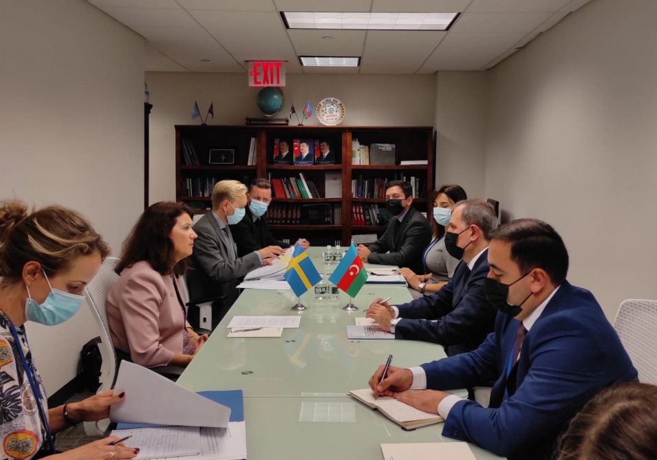 Azerbaijan`s Minister of Foreign Affairs Jeyhun Bayramov has met with Minister for Foreign Affairs of Sweden, OSCE Chairperson-in-Office Ann Linde on the sidelines of the 76th session of the UN General Assembly.