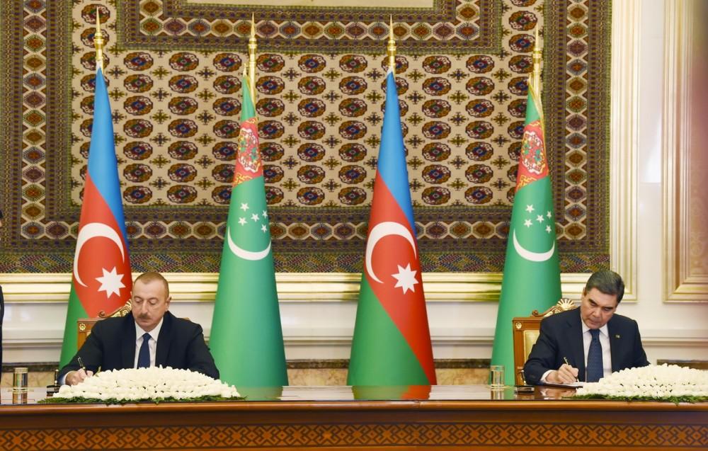 Baku, Azerbaijan, Nov. 22 Trend: Following the expanded meeting, a ceremony of signing Azerbaijan-Turkmenistan documents has been held with participation of President of the Republic of Azerbaijan Ilham Aliyev and President of Turkmenistan Gurbanguly Berdimuhamedov. Follow Trend on Telegram. Only most interesting and important news