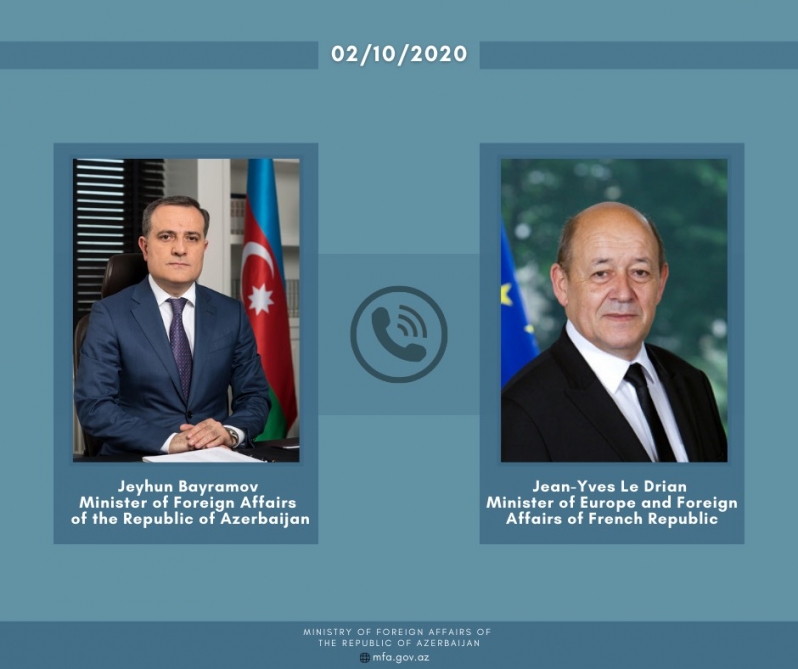Azerbaijan`s Foreign Minister Jeyhun Bayramov has had a telephone conversation with Minister for Europe and Foreign Affairs of France Jean-Yves Le Drian.