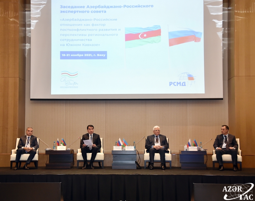 Baku, November 19, AZERTAC The first meeting of the Russian-Azerbaijani Expert Council on "Azerbaijan-Russia strategic partnership as an important factor of development and regional cooperation prospects in the post-conflict period in the South Caucasus" has kicked off in Baku. The event was jointly organized by the Center of Analysis of International Relations and the Russian International Affairs Council. The event participants included Assistant to the President of the Republic of Azerbaijan - Head of the Foreign Policy Department of the Presidential Administration Hikmat Hajiyev, Director General of the Russian International Affairs Council Andey Kortunov, chairman of the Board of the Center for International Relations Analysis Farid Shafiyev, Russian Ambassador to Azerbaijan Mikhail Bocharnikov, Azerbaijan’s Foreign Ministry Ambassador on special Affairs Elshad Isgandarov and others.