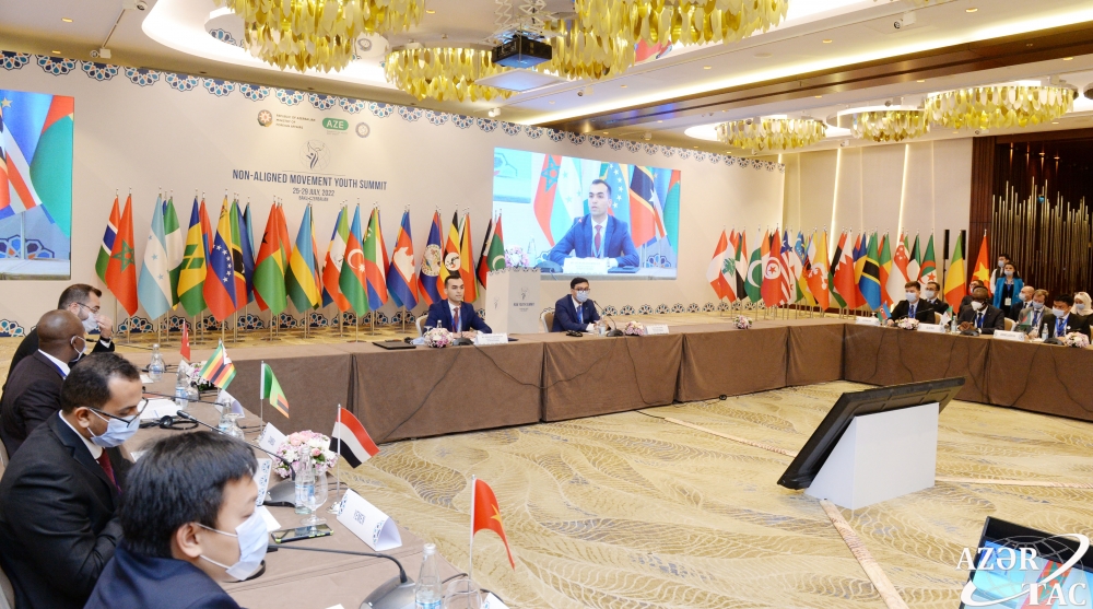 Baku, July 25, AZERTAC The Youth Summit of the Non-Aligned Movement (NAM) has today kicked-off in Baku. Young representatives from more than 60 NAM member states are attending the Summit. Addressing the event, Azerbaijan’s Minister of Youth and Sports Farid Gayibov has read out the address by President Ilham Aliyev to the participants of the Summit. The event will feature discussions on various issues, including the NAM Youth Network becoming an international organization.