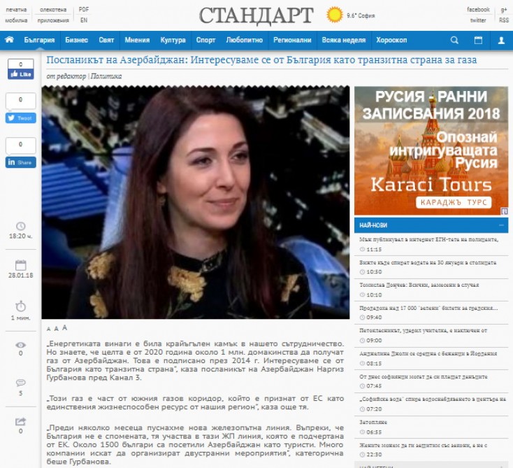 The Ambassador, in her interview, touched upon Azerbaijani-Bulgarian relations, as well as cooperation in the field of energy.