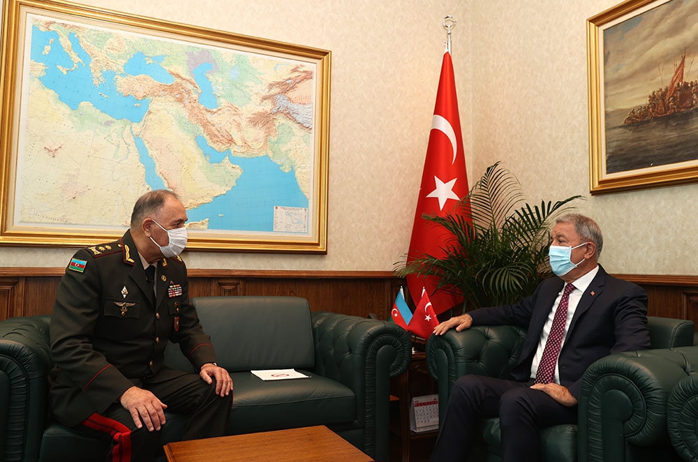 Baku, September 13, AZERTAC First Deputy Minister of Defense of the Republic of Azerbaijan - Chief of the General Staff of the Azerbaijan Army, Lieutenant General Karim Valiyev, who is on an official visit to the Republic of Turkey has met with Turkish Minister of National Defense Hulusi Akar and Chief of the General Staff, Army General Yasar Guler, Azerbaijan’s Defense Ministry told AZERTAC. During the meetings, the sides discussed the development of cooperation in military, military-technical, military-educational, engineering and other fields. The successful development of cooperation between the armies of the two countries, based on friendly and fraternal relations was also stressed.