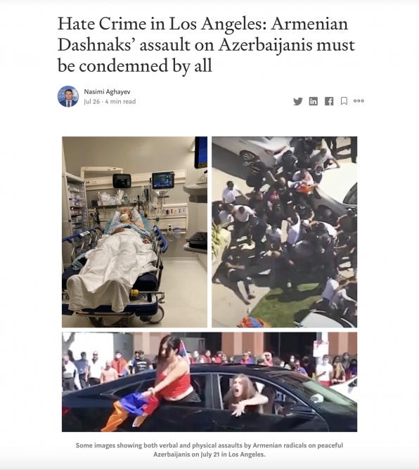 An article by Azerbaijan’s Consul General Nasimi Aghayev on the violence committed by Armenian Dashnaks against Azerbaijani community members in Los Angeles on July 21, was published on the online media platform - Medium.