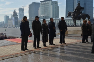 Ulaanbaatar /MONTSAME/ On occasion of the 22nd anniversary of adopting the new Constitution of Mongolia, a ceremony ran Monday to pay tribute to the Monument of Great Chingis Khaan. Present were the Speaker of the State Great Khural (parliament) Z.Enkhbold, the Prime Minister N.Altankhuyag, parliamentarians, former members of the People’s Khural, former members of the State Conference, and other officials. This action followed other ceremonies when the original Constitution was placed in the Museum of State and a "State Symbol" exhibition opened, displaying documents on historical facts about passing the Constitution and versions of the new State Flags.