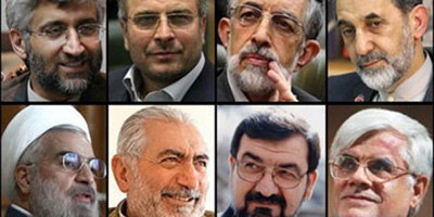 The Guardian Council approved the following candidates: Saeed Jalili, Gholam-Ali Haddad-Adel, Mohsen Rezaei, Hassan Rohani, Mohammad Reza Aref, Mohammad Gharazi, Mohammad Baqer Qalibaf, and Ali Akbar Velayati.