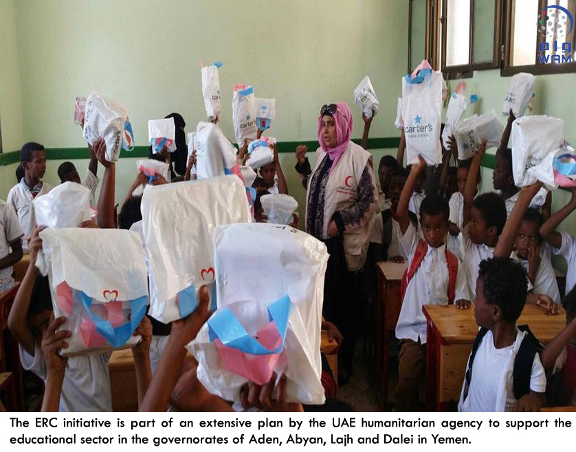 ADEN, 1st November, 2016 (WAM)-- The Emirates Red Crescent has distributed some 600 school bags to underprivileged students in Al Buraiqeh, a district of the governorate of Aden, southern Yemen.