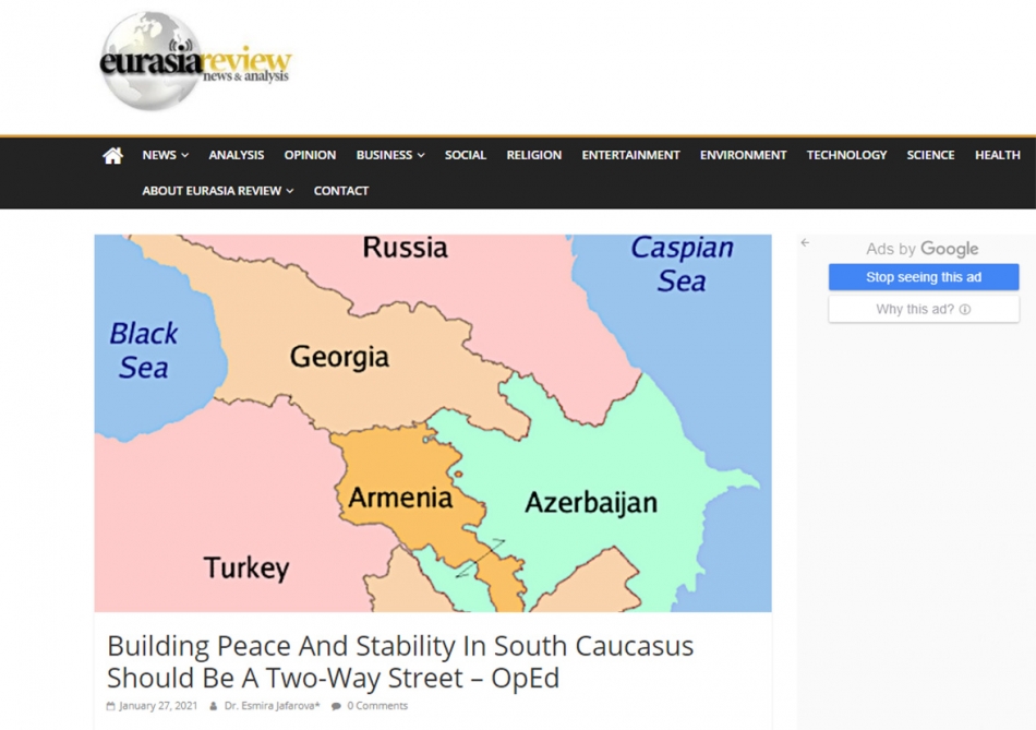 Eurasia Review portal has published an article by Esmira Jafarova, a Board Member of the Center of Analysis of International Relations of Azerbaijan (AIR Center).