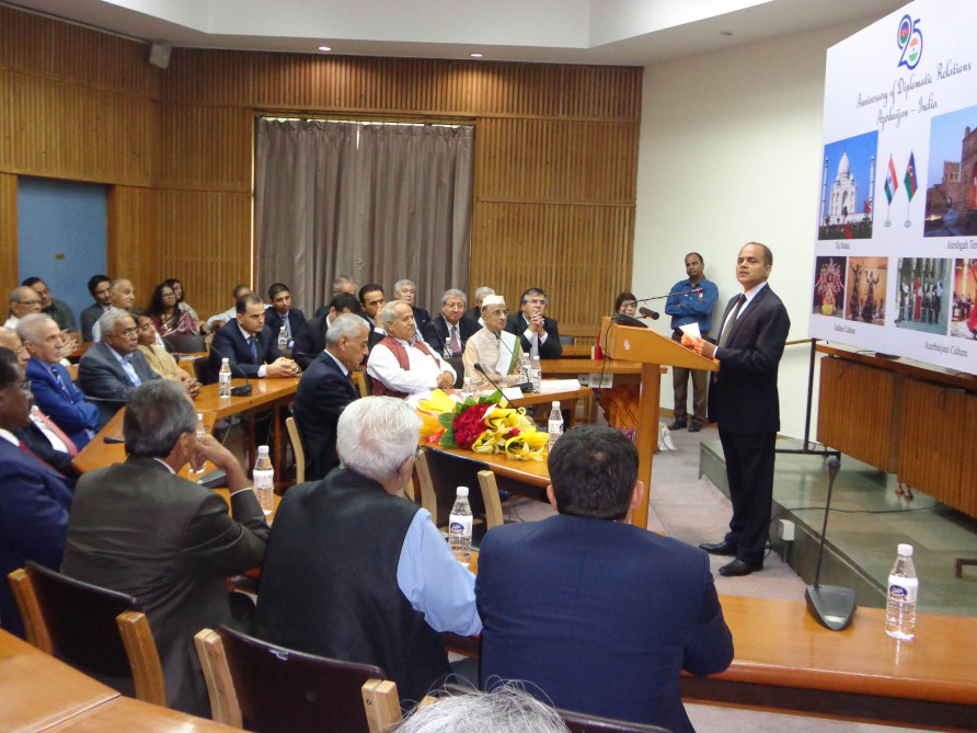 Baku, August 8, AZERTAC An event to mark 25th anniversary of establishment of diplomatic relations between India and Azerbaijan was held in Delhi. Addressing the event, Azerbaijan`s Ambassador to India Ibrahim Hajiyev provided an insight into the country`s history, as well as its culture, traditions. “Azerbaijan has entered new way of development thanks to wise policy of national leader Heydar Aliyev,” he added. The diplomat also noted Azerbaijan has become a leader state of the region under the leadership of President Ilham Aliyev. The diplomat touched upon the works done in the country in the fields of development of economy, as well as non-oil sector. Ibrahim Hajiyev provided an insight into the Armenia-Azerbaijan Nagorno-Karabakh conflict. He said Armenia occupied 20 per cent of Azerbaijan`s lands, expelling over million Azerbaijanis from their homes. He highlighted living in peace and stability of representatives of various confessions in the country, adding various peoples of the region have historically enjoyed good-neighborliness, friendship and cooperation based on the robust tolerance traditions, mutual respect and trust. Head of Eurasia Division of Ministry of External Affairs of India G. V. Srinivas praised relations between the two countries. The event brought together state officials of India, representatives of diplomatic corps accredited in India, members of India-Azerbaijan Friendship Association, businessmen and the Media.