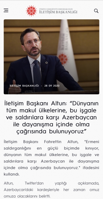 Fahrettin Altun: We call on all sensible nations to stand with Azerbaijan in its rightful struggle against foreign occupation and attacks
