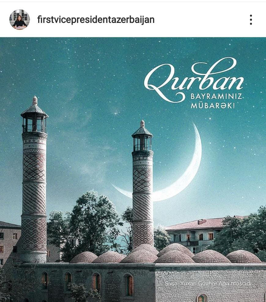 First Vice-President of the Republic of Azerbaijan Mehriban Aliyeva has made a post on her official Instagram page on the occasion of Eid al-Adha.