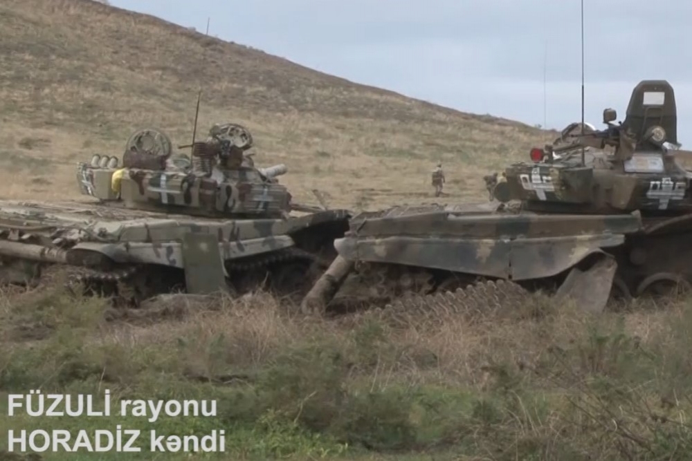 Azerbaijan`s Ministry of Defense has released footage of the armored equipment left by the Armenian troops who retreated from the battle field.