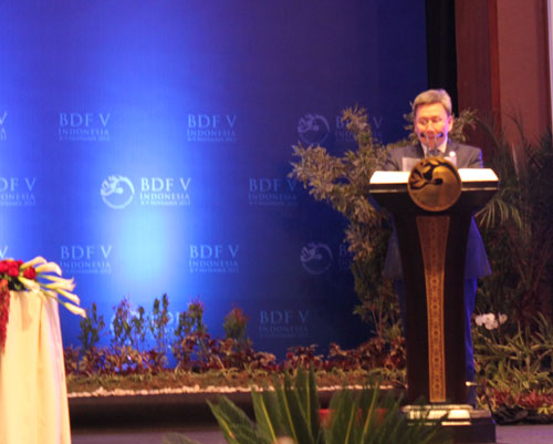 The Foreign Minister L.Bold sounded a greeting of the State Head Ts.Elbegdorj and congratulated the gathered on the 5th anniversary of the BDF. He underlined that Mongolia highly appreciates the BDF that is fruitfully expanding under a leadership of Indonesia's President. The BDF is becoming the action that backs the democracy in the region, he added.