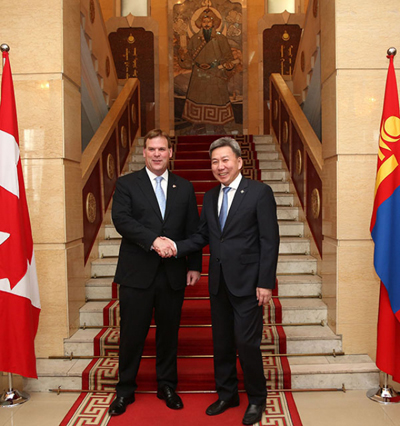 The two Foreign Ministers held negotiations, reaffirmed the bilateral relations for a broad partnership, and exchanged views on the Mongolia-Canada cooperation at international and regional arenas.